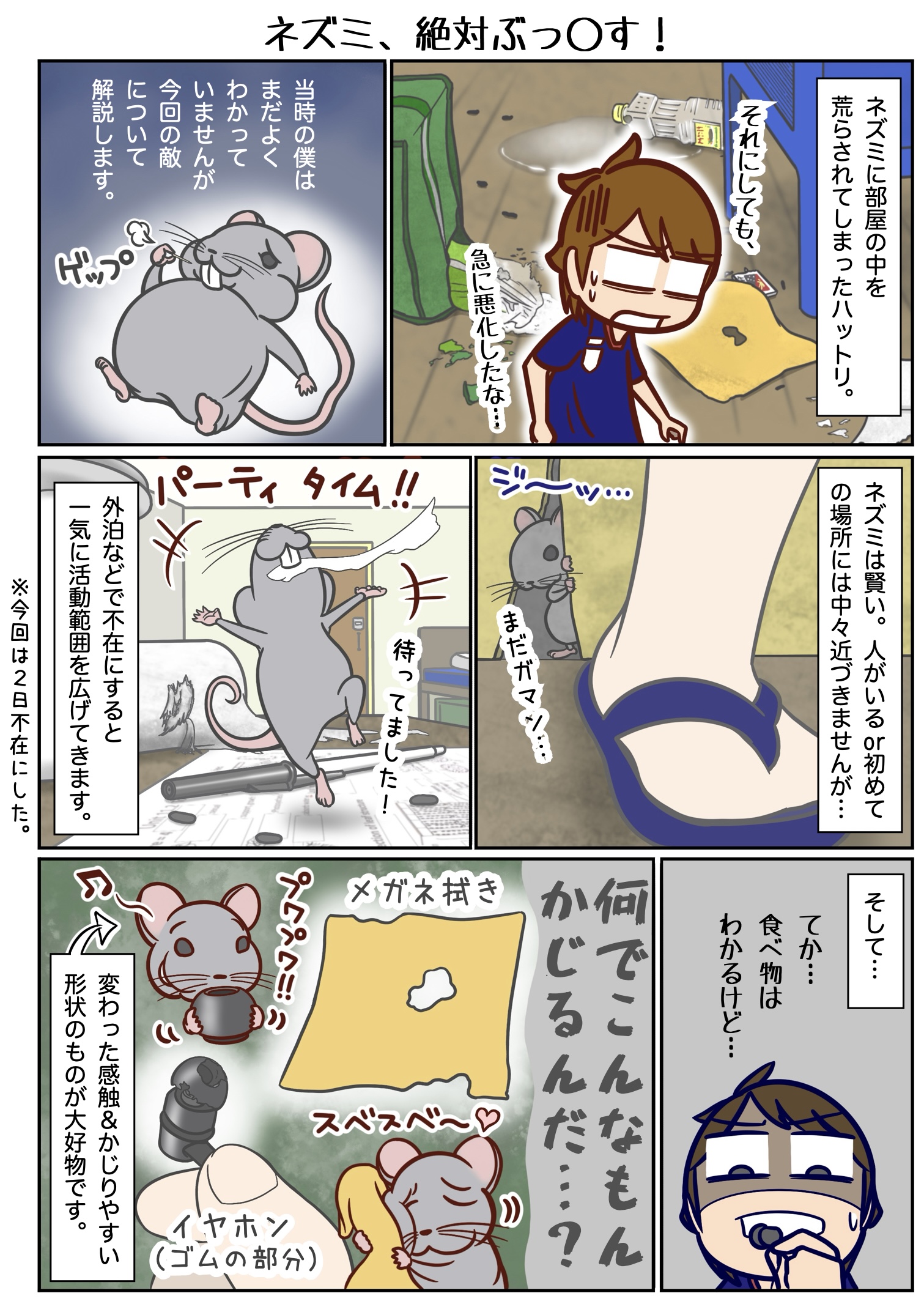 HOME > マンガ > みんなパプアに行けばいい。 > みんなパプアに行けばいい。 ネズミ大戦争④「ネズミ、絶対ぶっ○す!」 2025年12月16日 パプアで一番ビックリした事件でした笑 これをやられるとこちらも殺らざるをえない… 次回から反撃していきます。 【次のマンガへ】 【前のマンガへ】 【このマンガの最初へ】 Twitter Share Pocket Hatena LINE コピーする -みんなパプアに行けばいい。