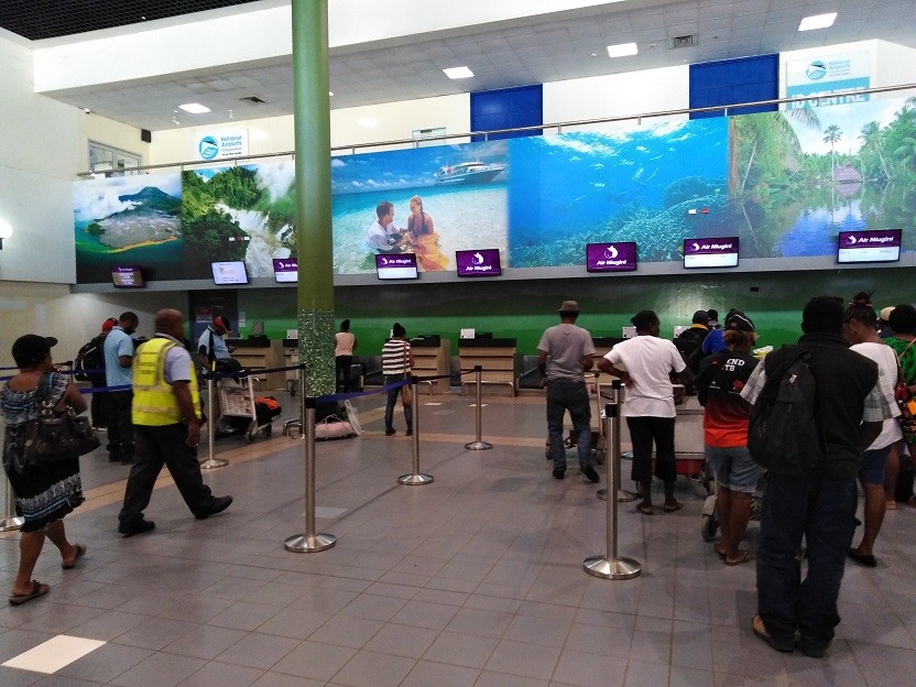 ↑首都の空港のチェックインカウンターはこんな感じでいろんなパプアっぽい写真がたくさんあります。