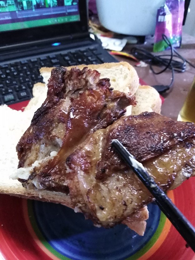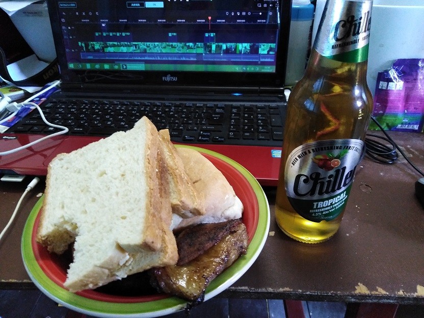 昼:大量のパンとゴム肉